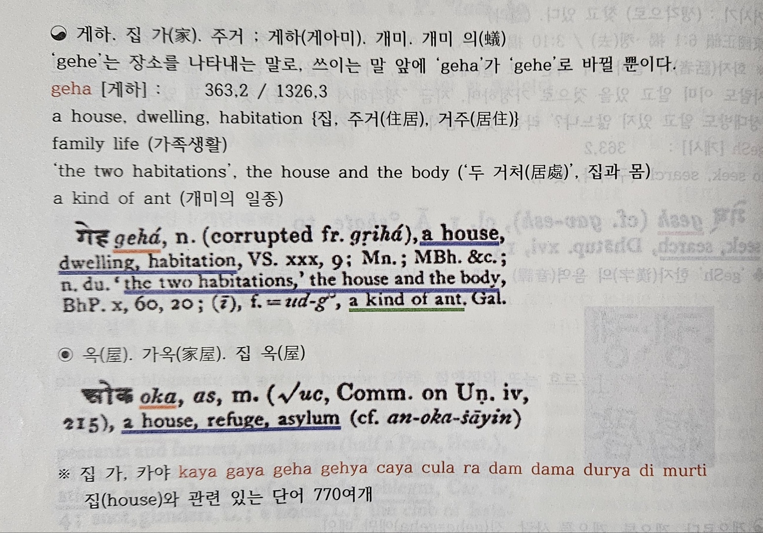 범어(산스크트어)에서 집(家)을 나타내는 말들 중에