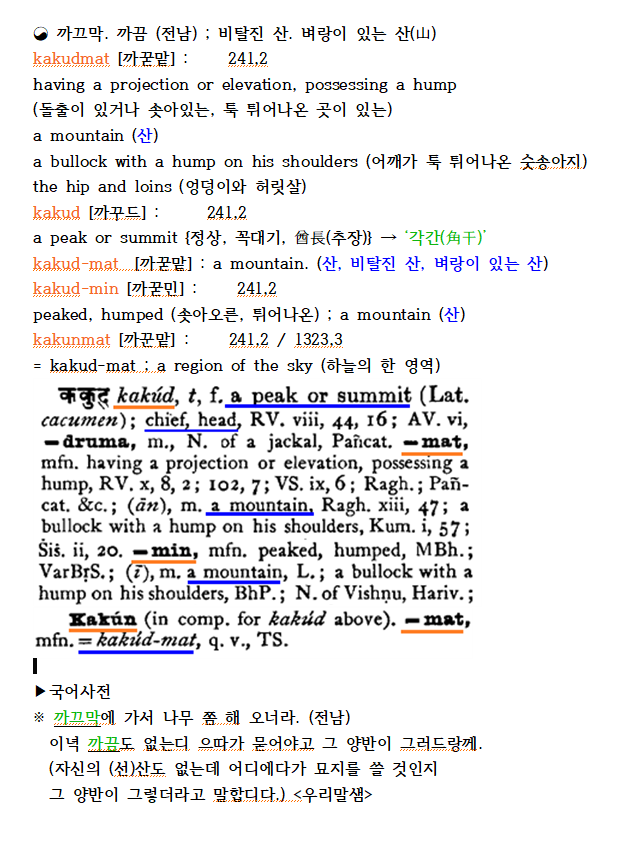 ■ 전라도의 ‘까끄막’, 범어 kakud-mat