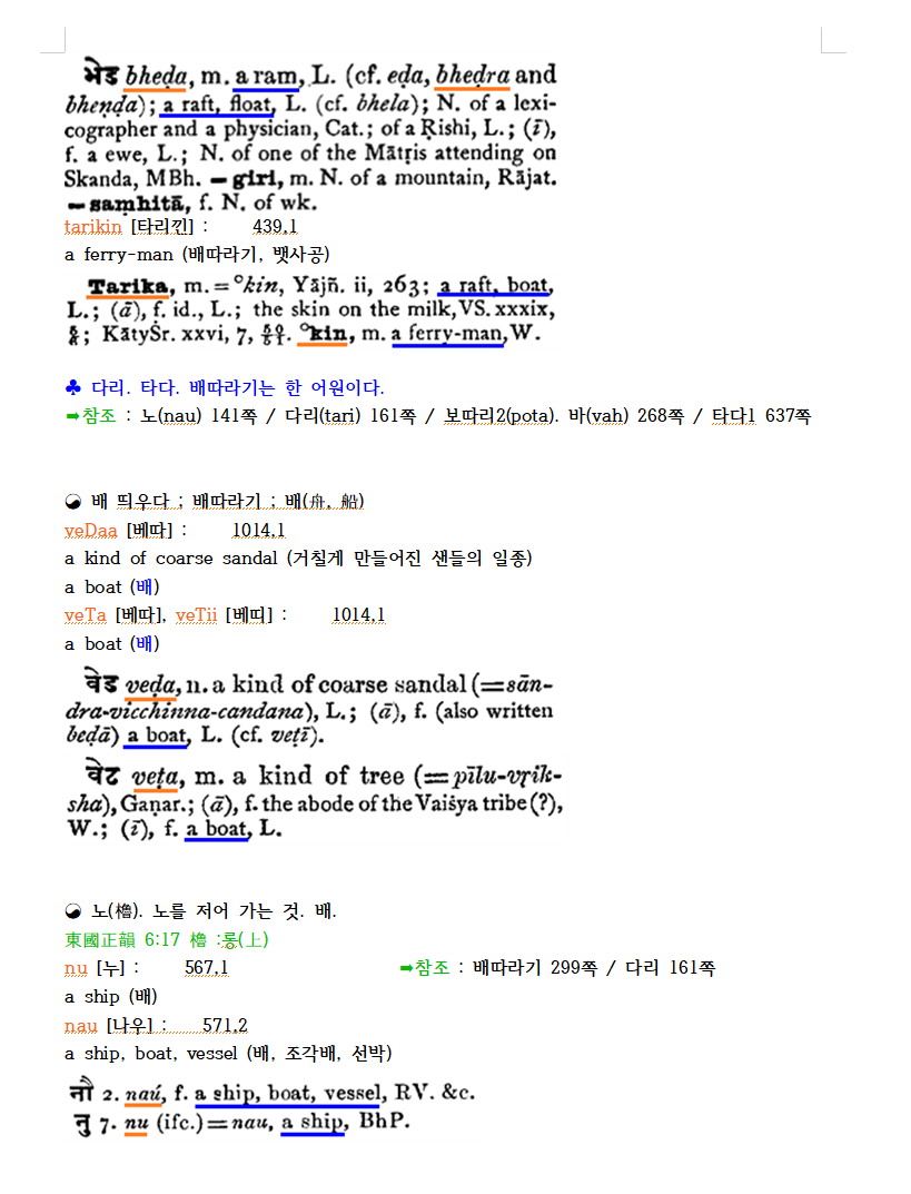 동국정운의 노(櫓), 산스크리트 nau / nu는 모두 “배, 선박, 조각배”를 뜻한다.