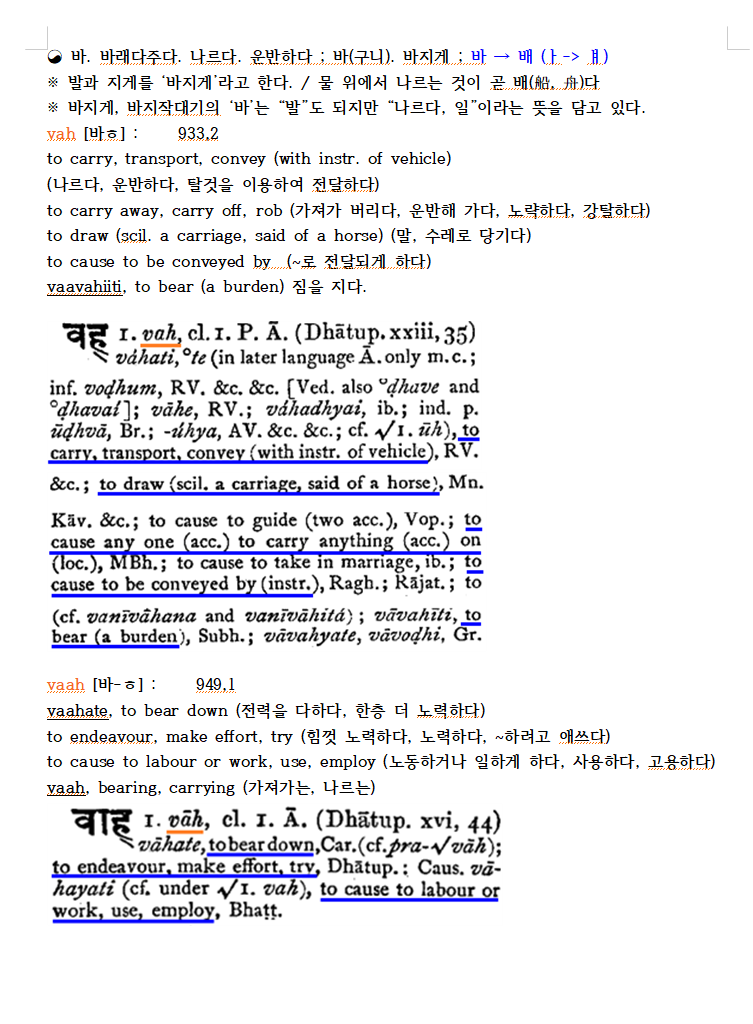 ■ 바래다·바지게·발 — “나르는 바(바ㅎ, vah)”