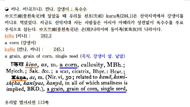 강냉이를 뜻하는 kiNa, kaNa에서 왔다는 사실은,