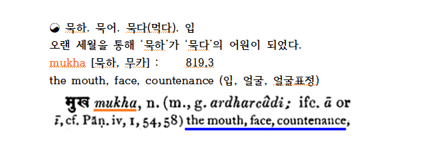 이 말의 뿌리에는 산스크리트 mukha(묵하),