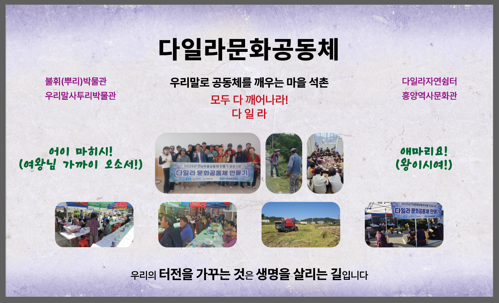 The Seokchon Cultural Community has carried out a year-long project titled “Creating the Da·illa Cultural Community” under the banner of “awakening the spirit of community through our native language.”