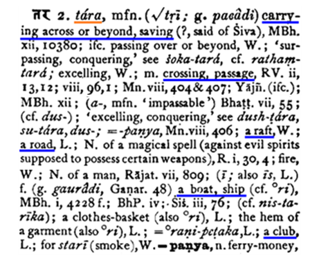 tara (to cross) → tari (boat) → bridge (structure for crossing)