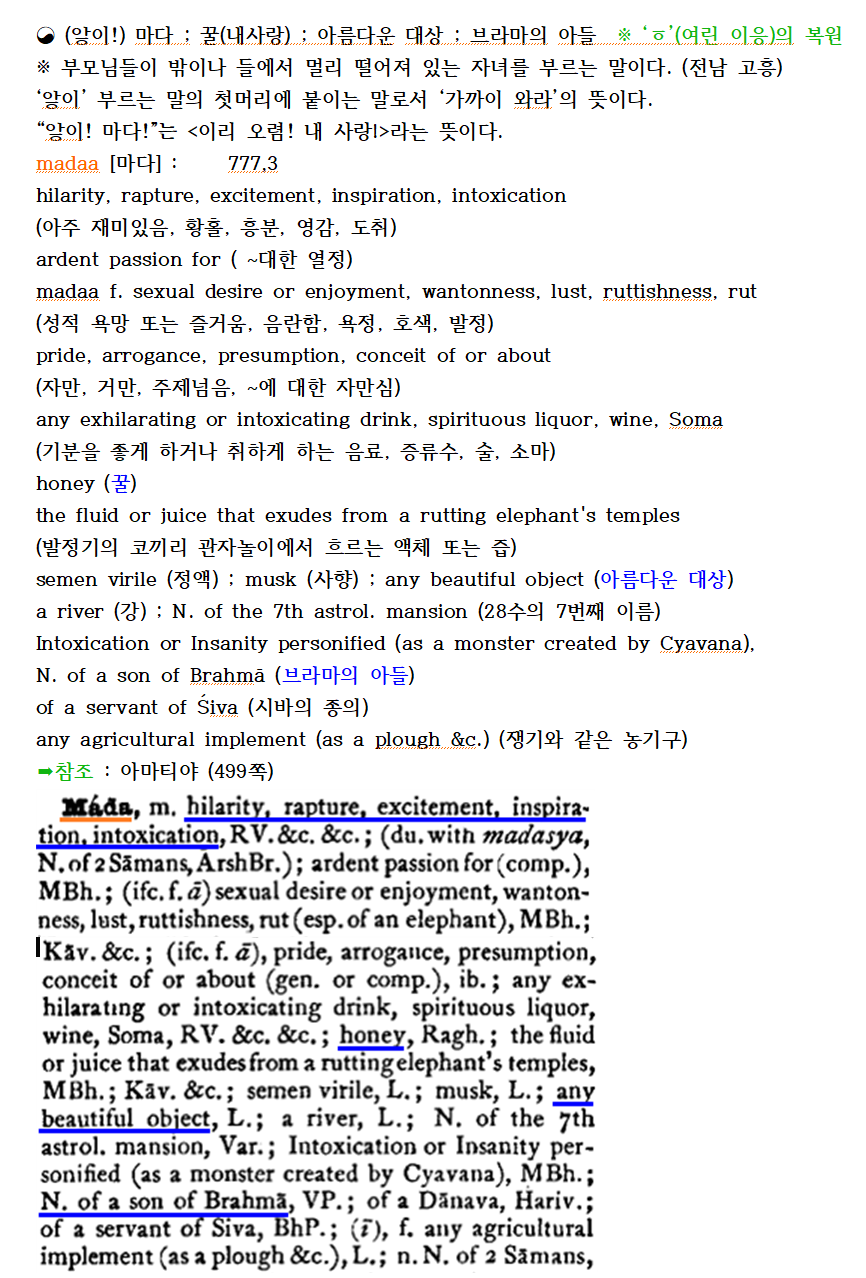 ‘마다(madā)’는 ‘꿀’, ‘아름다운 대상’, ‘황홀’, ‘열정’을 의미한다.