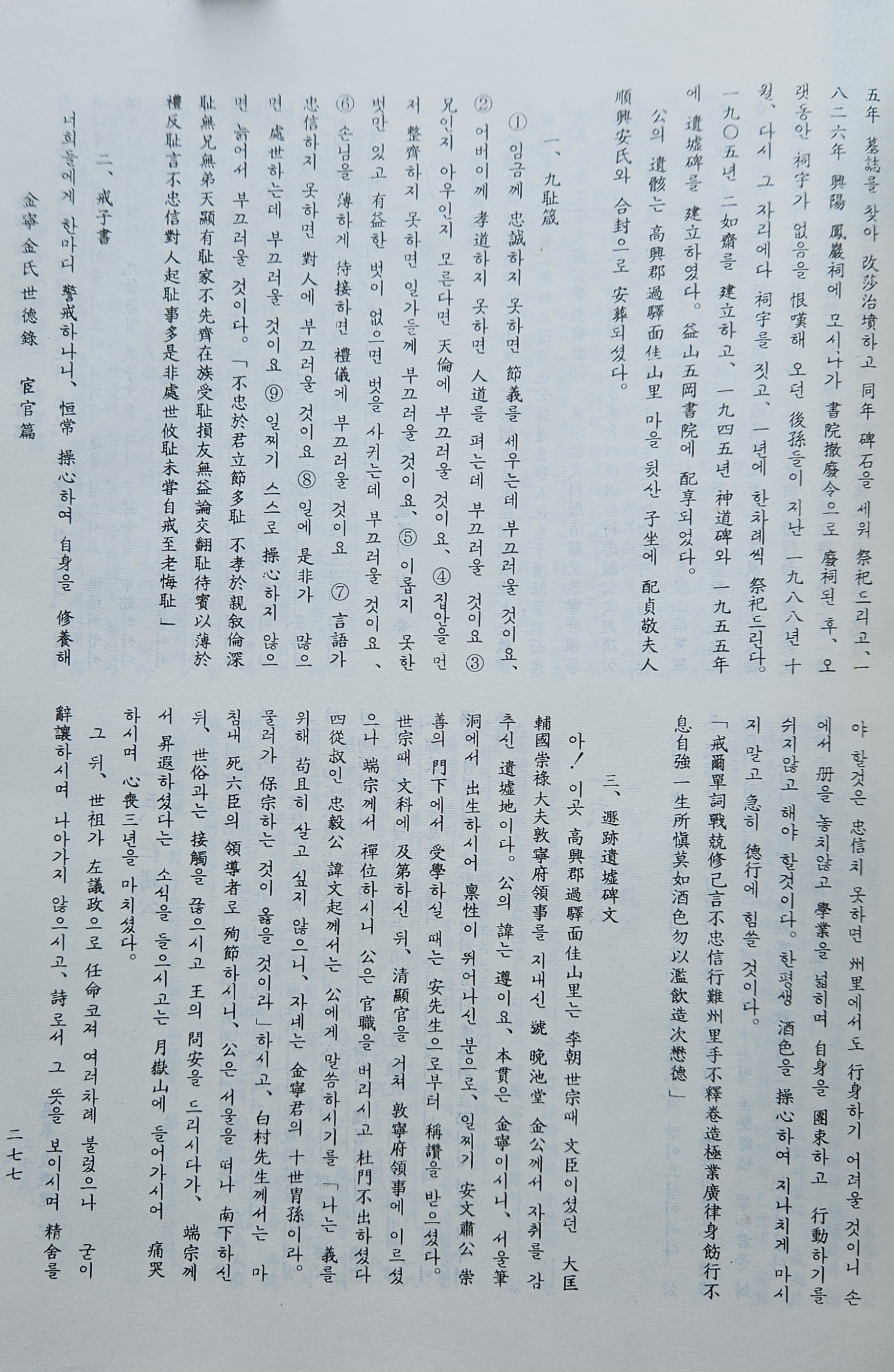 - Departure from the Capital to the Countryside (公自京城筆峴移寓縣東簞巖面佳山里) Lord Kim Jun moved his residence from Pil-hyeon (Pil-dong) in the capital city of Hanyang to Gasan-ri, Jeomam-myeon, in the eastern part of the county.